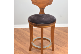 Natural Walnut with black velvet upholstered seat cushion. The seat cushion could easily be replaced as the existing is a little worn out. You supply the leather or fabric (2 sq. ft.). The cost would be an addtional $100 for this.