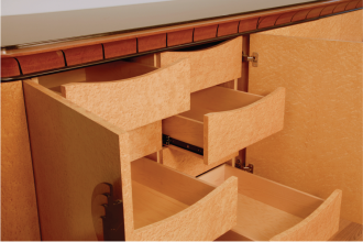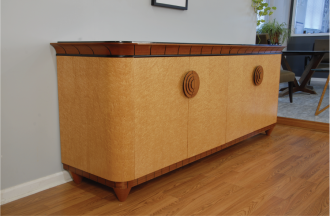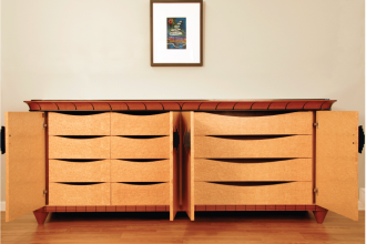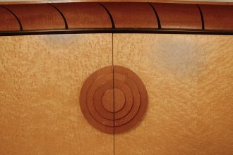 Natural Birdseye Maple with Mahogany and Black detailing.