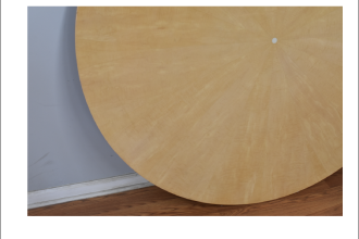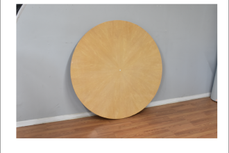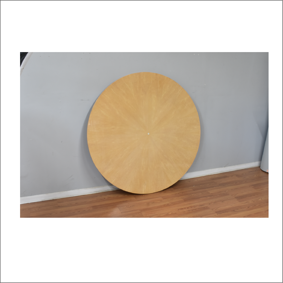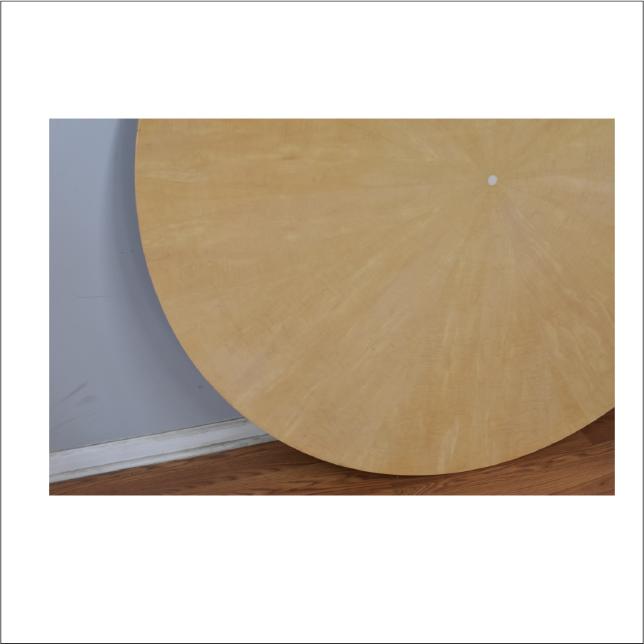 60" Diamater x2" thick top Curly Maple Starburst pattern with center Mother of Pearl detail. Finished in high gloss.