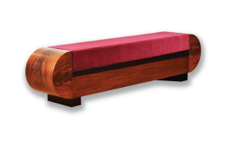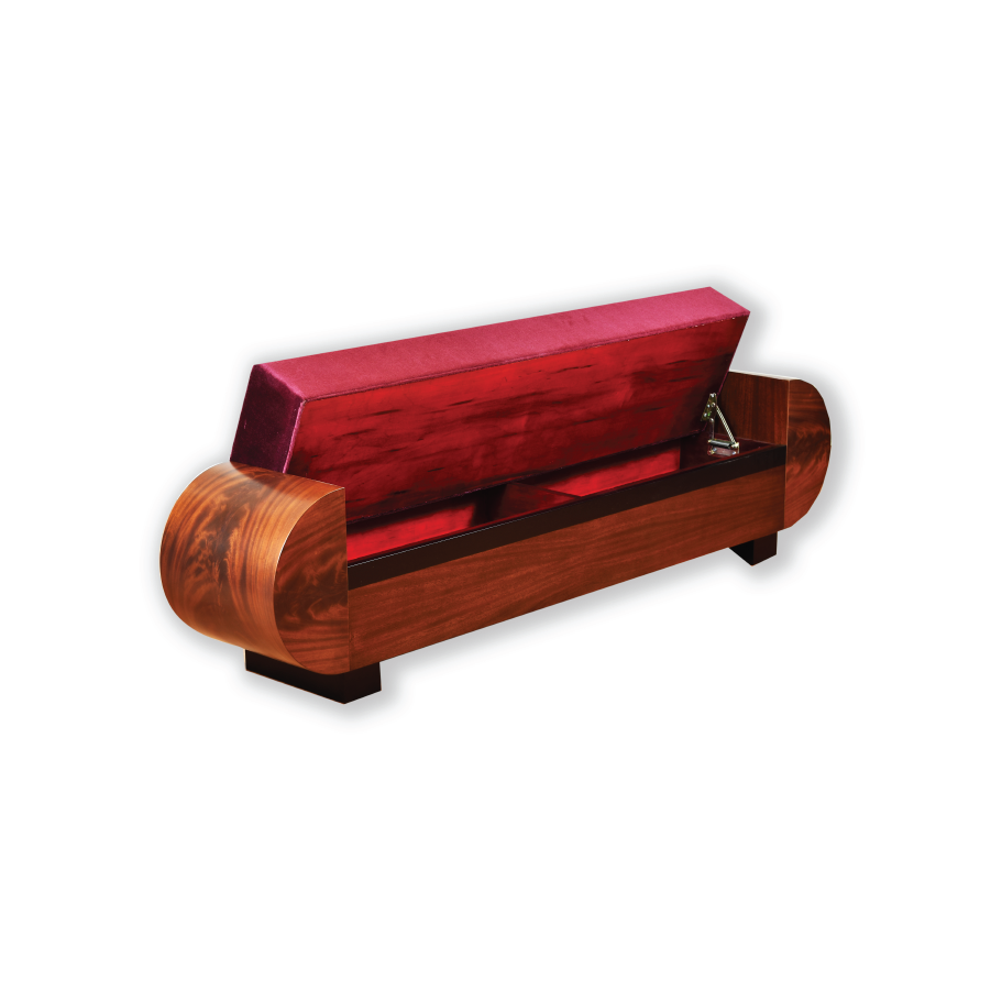 This Bench is made by Lafayette Concepts furniture. It has built-in storage under the seat. This bench can be made in different veneers and colors of your choice.