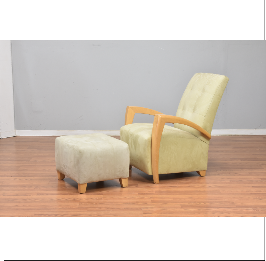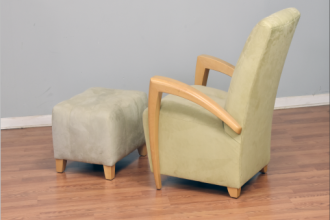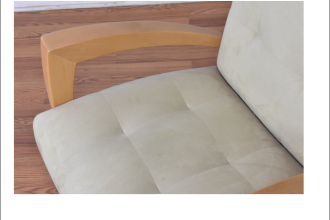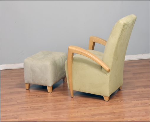 Natural Solid Maple Arms and legs with Nova Suede upholstery cover.