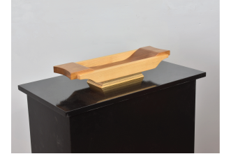 Natural Walnut and Maple. Perfect to place keys phone or whatever you want to put into it... Or just put it on display as an art object