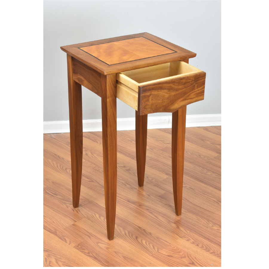 Walnut with Ebony and Avodire top and drawer.