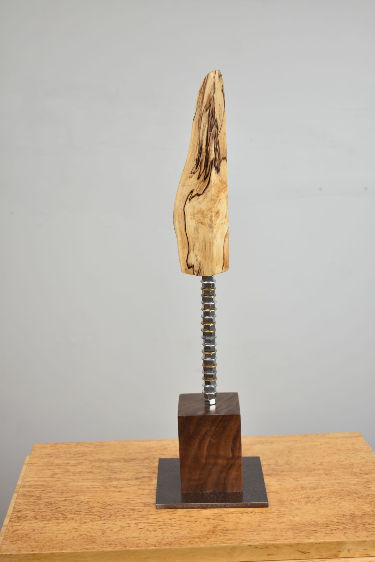 Natural Spalted wood with nuts and bolts neck with Marbled Walnut Base