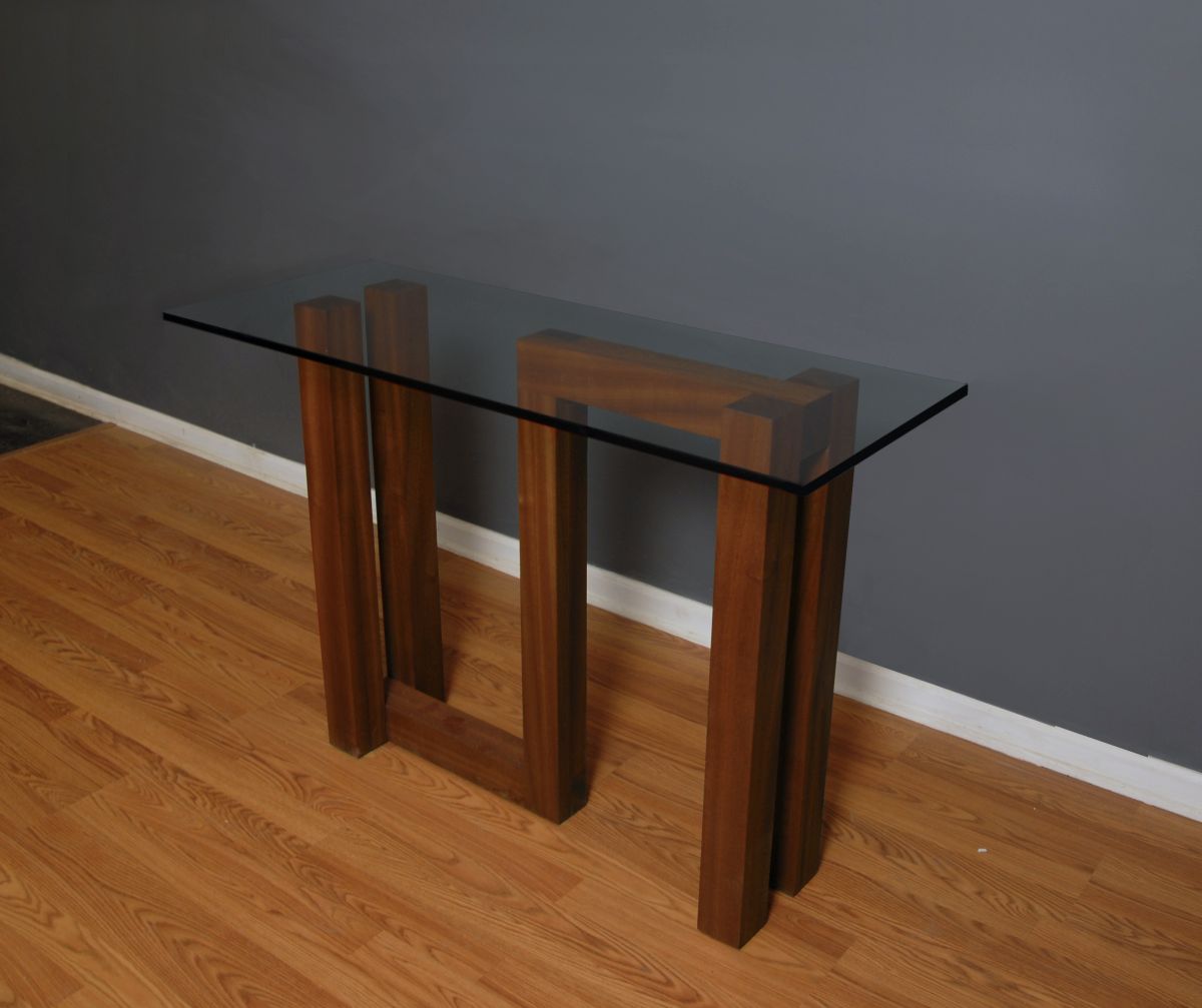 Precise joinery with solid Ribbon sapelli with a tempered glass top